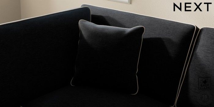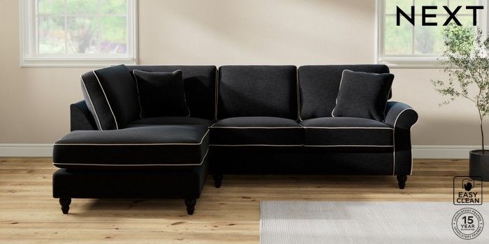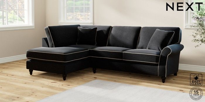 7.3.1 Buy Ashford Relaxed Sit Medium Corner Chaise - Left Hand Fine Chenille with Contrast Black and Oyster Low Turned - Dark from the Next UK online shop Click here to use our accessible website