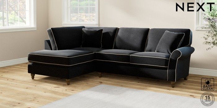 7.3.1 Buy Ashford Relaxed Sit Medium Corner Chaise - Left Hand Fine Chenille with Contrast Black and Oyster Low Turned - Mid from the Next UK online shop Click here to use our accessible website