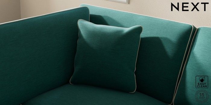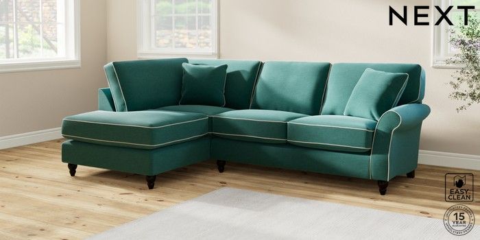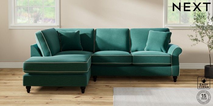 7.3.1 Buy Ashford Relaxed Sit Medium Corner Chaise - Left Hand Fine Chenille with Contrast Dark Juniper Green and Oyster Low Turned - Dark from the Next UK online shop Click here to use our accessible website