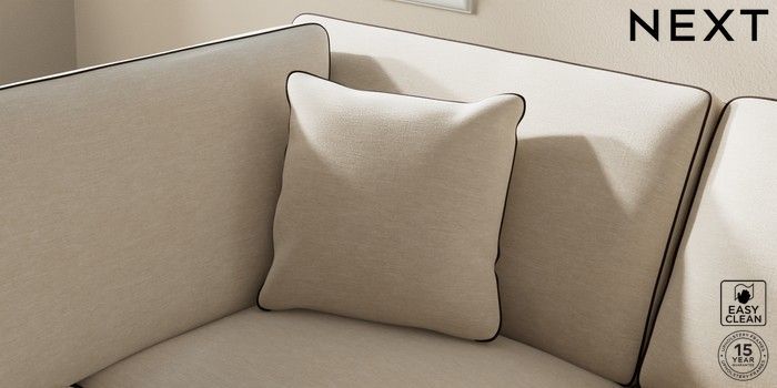7.3.1 Buy Ashford Relaxed Sit Medium Corner Chaise - Left Hand Fine Chenille with Contrast Oyster and Chocolate Brown Castor - Dark from the Next UK online shop Click here to use our accessible website