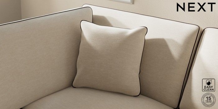 7.3.1 Buy Ashford Relaxed Sit Medium Corner Chaise - Left Hand Fine Chenille with Contrast Oyster and Chocolate Brown Low Turned - Dark from the Next UK online shop Click here to use our accessible website