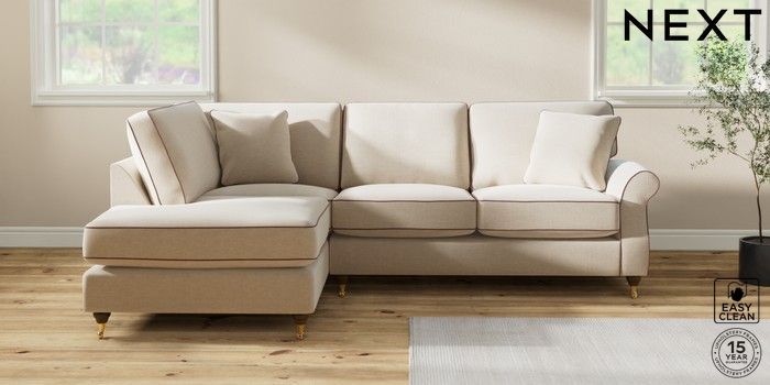 7.3.1 Buy Ashford Relaxed Sit Medium Corner Chaise - Left Hand Fine Chenille with Contrast Oyster and Mid Mulberry Purple Castor - Mid from the Next UK online shop Click here to use our accessible website