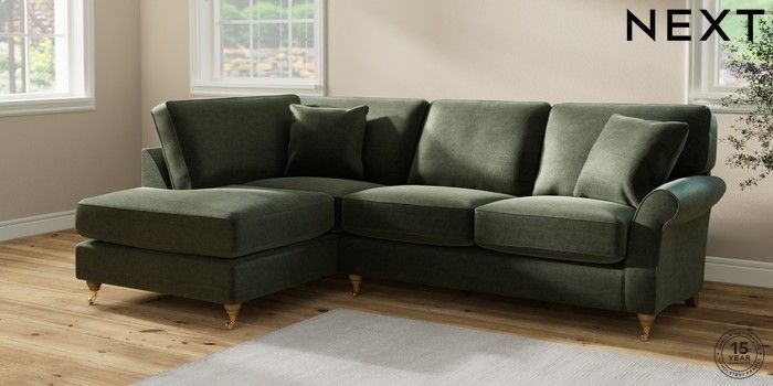 6.12.1 Buy Ashford Relaxed Sit Medium Corner Chaise - Left Hand Luxe Chenille Mid Green Castor - Light from the Next UK online shop Click here to use our accessible website