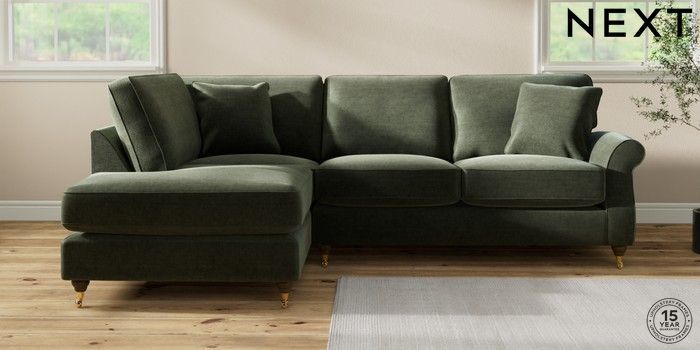 6.12.1 Buy Ashford Relaxed Sit Medium Corner Chaise - Left Hand Luxe Chenille Mid Green Castor - Mid from the Next UK online shop Click here to use our accessible website