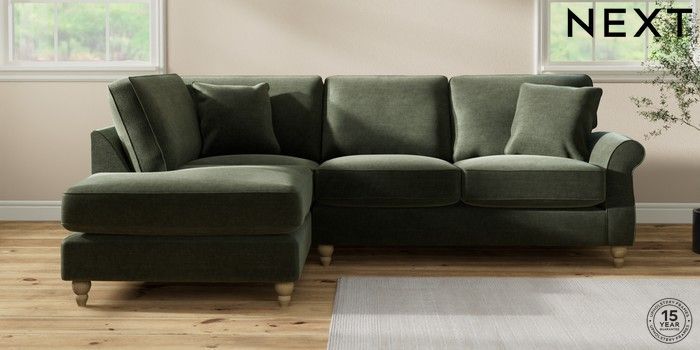 6.12.1 Buy Ashford Relaxed Sit Medium Corner Chaise - Left Hand Luxe Chenille Mid Green Low Turned - Light from the Next UK online shop Click here to use our accessible website