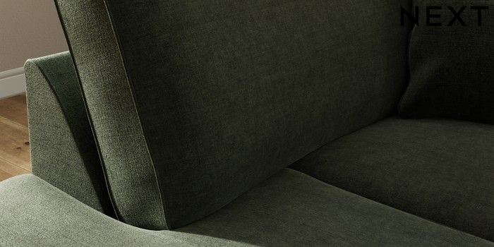 6.12.1 Buy Ashford Relaxed Sit Medium Corner Chaise - Left Hand Luxe Chenille Mid Green Modern Turned Metal Cap - Mid from the Next UK online shop Click here to use our accessible website