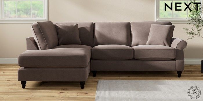 6.12.1 Buy Ashford Relaxed Sit Medium Corner Chaise - Left Hand Luxe Chenille Mink Brown Low Turned - Dark from the Next UK online shop Click here to use our accessible website