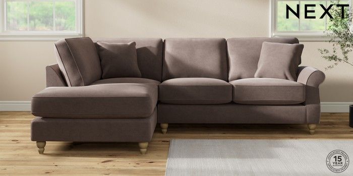6.12.1 Buy Ashford Relaxed Sit Medium Corner Chaise - Left Hand Luxe Chenille Mink Brown Low Turned - Light from the Next UK online shop Click here to use our accessible website