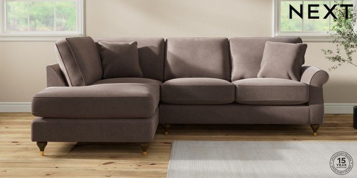 6.12.1 Buy Ashford Relaxed Sit Medium Corner Chaise - Left Hand Luxe Chenille Mink Brown Modern Turned Metal Cap - Mid from the Next UK online shop Click here to use our accessible website