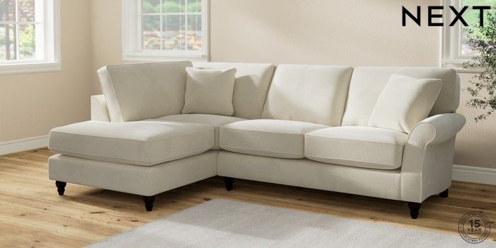 7.0.3 Buy Ashford Relaxed Sit Medium Corner Chaise - Left Hand Luxe Chenille Oyster Low Turned - Dark from the Next UK online shop Click here to use our accessible website