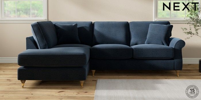 6.12.1 Buy Ashford Relaxed Sit Medium Corner Chaise - Left Hand Ripple Chenille Dark Blue Castor - Light from the Next UK online shop Click here to use our accessible website