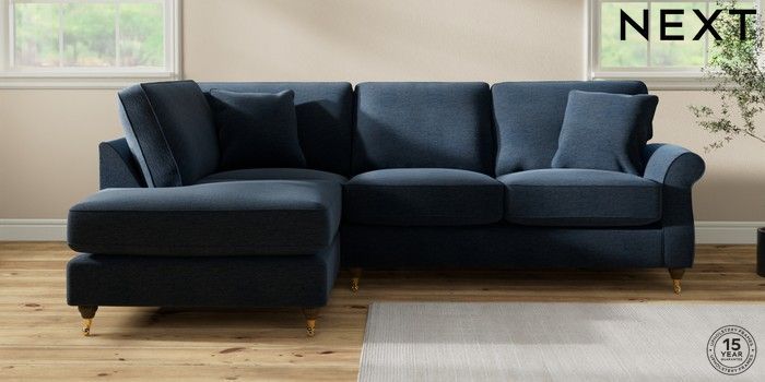 6.12.1 Buy Ashford Relaxed Sit Medium Corner Chaise - Left Hand Ripple Chenille Dark Blue Castor - Mid from the Next UK online shop Click here to use our accessible website