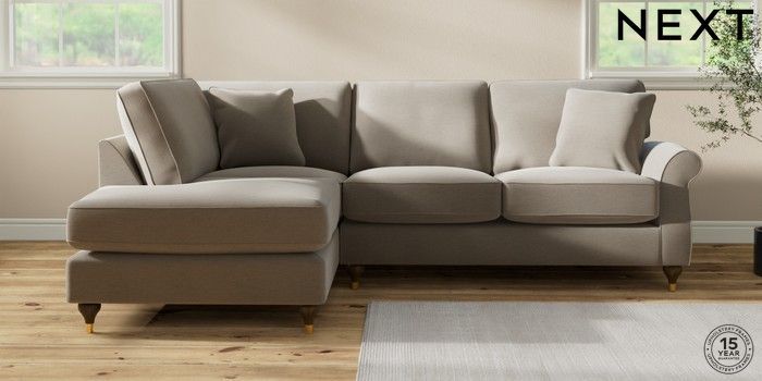 6.12.1 Buy Ashford Relaxed Sit Medium Corner Chaise - Left Hand Ripple Chenille Light Natural Modern Turned Metal Cap - Mid from the Next UK online shop Click here to use our accessible website