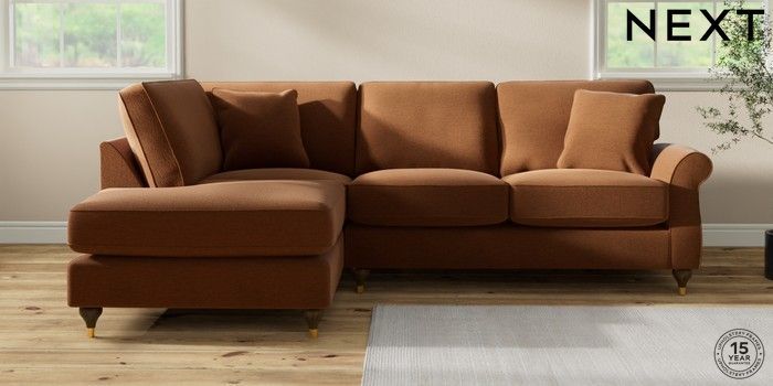 6.12.13 Buy Ashford Relaxed Sit Medium Corner Chaise - Left Hand Ripple Chenille Mid Rust Brown Modern Turned Metal Cap - Mid from the Next UK online shop Click here to use our accessible website