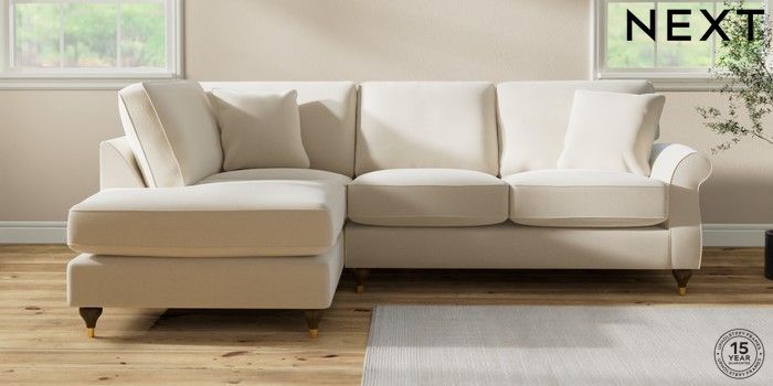 6.12.1 Buy Ashford Relaxed Sit Medium Corner Chaise - Left Hand Ripple Chenille Oyster Modern Turned Metal Cap - Mid from the Next UK online shop Click here to use our accessible website