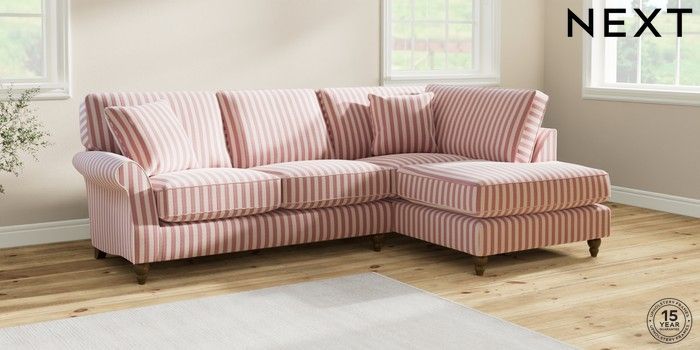 7.2.6 Buy Ashford Relaxed Sit Medium Corner Chaise - Right Hand Bold Chenille Stripe Dark Pink Low Turned - Mid from the Next UK online shop Click here to use our accessible website