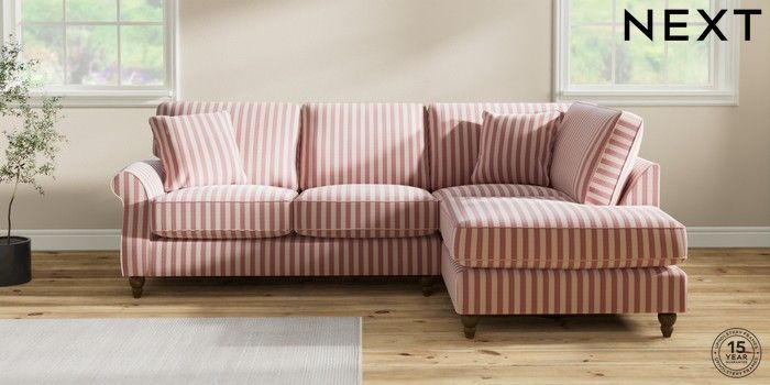 7.3.1 Buy Ashford Relaxed Sit Medium Corner Chaise - Right Hand Bold Chenille Stripe Dark Pink Low Turned - Mid from the Next UK online shop
