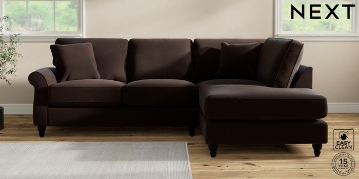 6.12.1 Buy Ashford Relaxed Sit Medium Corner Chaise - Right Hand Fine Chenille Easy Clean Chocolate Brown Low Turned - Dark from the Next UK online shop Click here to use our accessible website