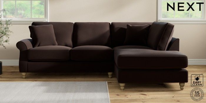 6.12.1 Buy Ashford Relaxed Sit Medium Corner Chaise - Right Hand Fine Chenille Easy Clean Chocolate Brown Low Turned - Light from the Next UK online shop Click here to use our accessible website