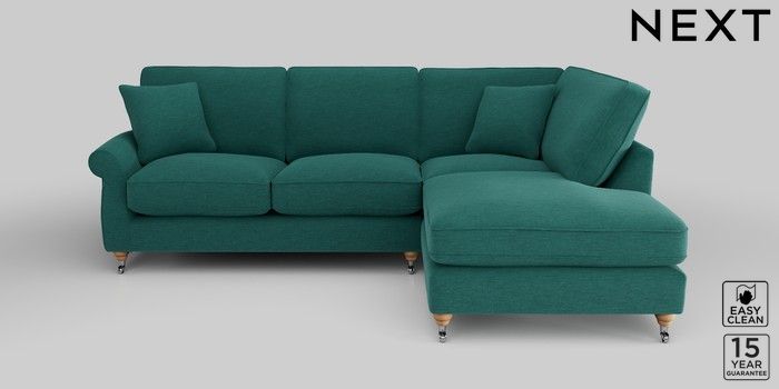 6.12.1 Buy Ashford Relaxed Sit Medium Corner Chaise - Right Hand Fine Chenille Easy Clean Dark Juniper Green Castor - Light from the Next UK online shop Click here to use our accessible website