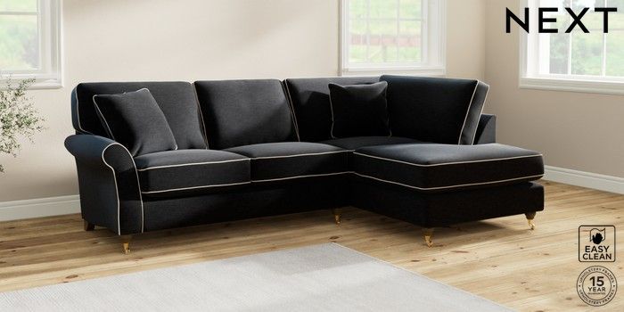 7.3.1 Buy Ashford Relaxed Sit Medium Corner Chaise - Right Hand Fine Chenille with Contrast Black and Oyster Castor - Mid from the Next UK online shop Click here to use our accessible website