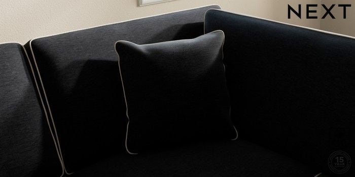 7.3.1 Buy Ashford Relaxed Sit Medium Corner Chaise - Right Hand Fine Chenille with Contrast Black and Oyster Modern Turned Metal Cap - Mid from the Next UK online shop Click here to use our accessible website