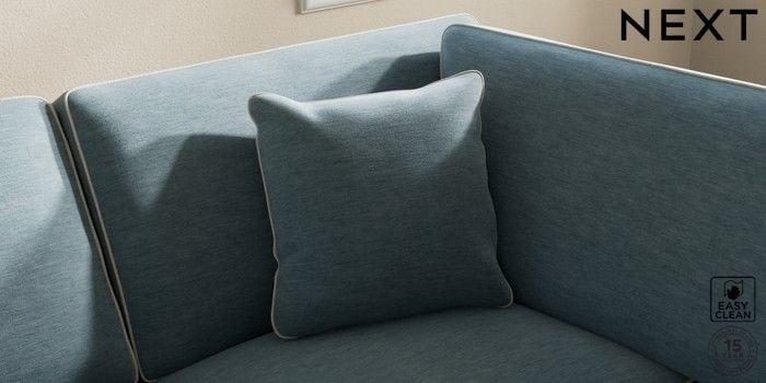 7.3.1 Buy Ashford Relaxed Sit Medium Corner Chaise - Right Hand Fine Chenille with Contrast Mid Blue and Oyster Low Turned - Dark from the Next UK online shop Click here to use our accessible website
