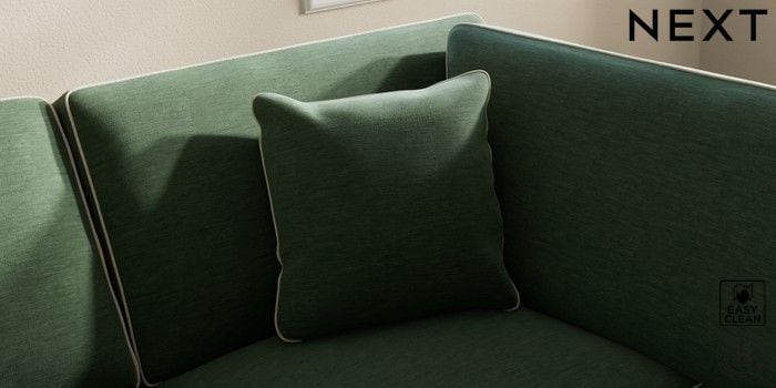 7.3.1 Buy Ashford Relaxed Sit Medium Corner Chaise - Right Hand Fine Chenille with Contrast Mid Khaki Green and Oyster Castor - Dark from the Next UK online shop Click here to use our accessible website