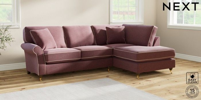 7.3.1 Buy Ashford Relaxed Sit Medium Corner Chaise - Right Hand Fine Chenille with Contrast Mid Mulberry Purple and Oyster Castor - Mid from the Next UK online shop Click here to use our accessible website