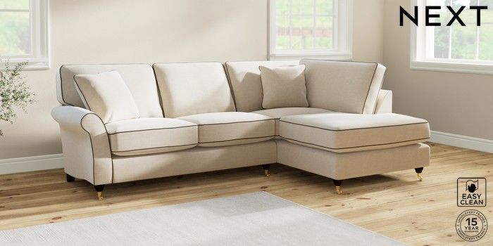 7.3.1 Buy Ashford Relaxed Sit Medium Corner Chaise - Right Hand Fine Chenille with Contrast Oyster and Chocolate Brown Castor - Dark from the Next UK online shop Click here to use our accessible website