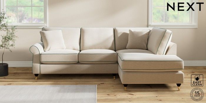 7.3.1 Buy Ashford Relaxed Sit Medium Corner Chaise - Right Hand Fine Chenille with Contrast Oyster and Dark Juniper Green Castor - Dark from the Next UK online shop Click here to use our accessible website