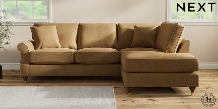 6.12.1 Buy Ashford Relaxed Sit Medium Corner Chaise - Right Hand Luxe Chenille Honey Yellow Modern Turned Metal Cap - Mid from the Next UK online shop Click here to use our accessible website