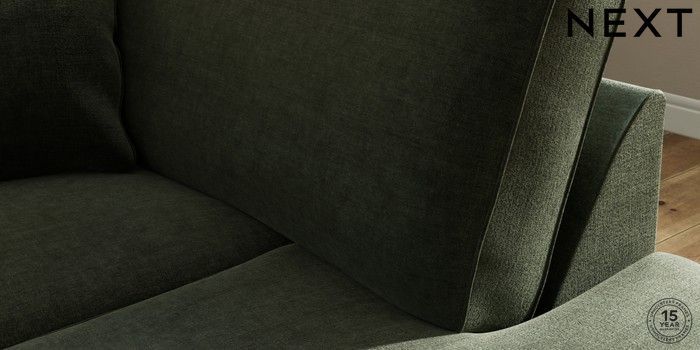 6.12.1 Buy Ashford Relaxed Sit Medium Corner Chaise - Right Hand Luxe Chenille Mid Green Castor - Dark from the Next UK online shop Click here to use our accessible website