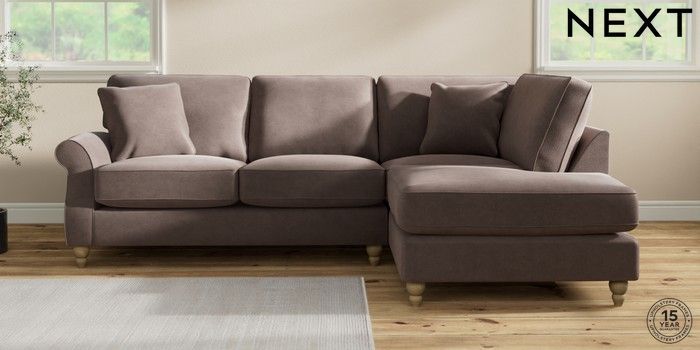6.12.1 Buy Ashford Relaxed Sit Medium Corner Chaise - Right Hand Luxe Chenille Mink Brown Low Turned - Light from the Next UK online shop Click here to use our accessible website
