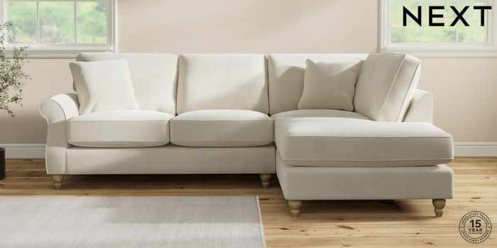 7.0.3 Buy Ashford Relaxed Sit Medium Corner Chaise - Right Hand Luxe Chenille Oyster Low Turned - Light from the Next UK online shop Click here to use our accessible website