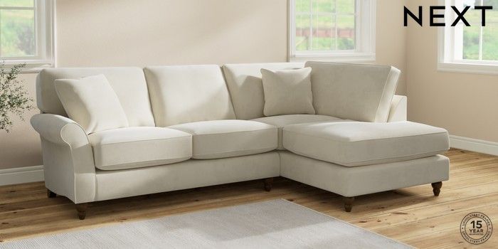 7.0.3 Buy Ashford Relaxed Sit Medium Corner Chaise - Right Hand Luxe Chenille Oyster Low Turned - Mid from the Next UK online shop Click here to use our accessible website