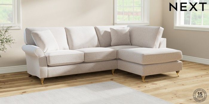 7.2.6 Buy Ashford Relaxed Sit Medium Corner Chaise - Right Hand Multi Weave Oyster Castor - Light from the Next UK online shop Click here to use our accessible website