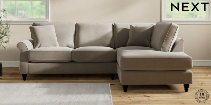 6.12.1 Buy Ashford Relaxed Sit Medium Corner Chaise - Right Hand Ripple Chenille Light Natural Low Turned - Dark from the Next UK online shop Click here to use our accessible website