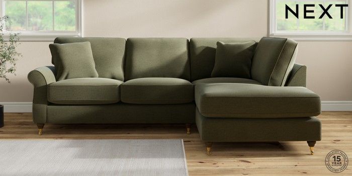 6.12.1 Buy Ashford Relaxed Sit Medium Corner Chaise - Right Hand Ripple Chenille Mid Moss Green Castor - Mid from the Next UK online shop Click here to use our accessible website