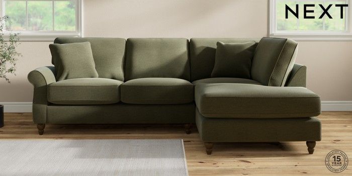 6.12.1 Buy Ashford Relaxed Sit Medium Corner Chaise - Right Hand Ripple Chenille Mid Moss Green Low Turned - Mid from the Next UK online shop Click here to use our accessible website