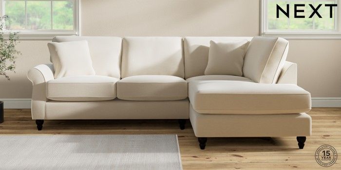 6.12.1 Buy Ashford Relaxed Sit Medium Corner Chaise - Right Hand Ripple Chenille Oyster Low Turned - Dark from the Next UK online shop Click here to use our accessible website