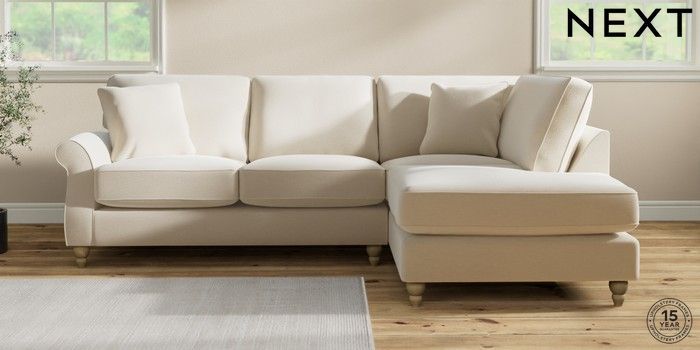 6.12.1 Buy Ashford Relaxed Sit Medium Corner Chaise - Right Hand Ripple Chenille Oyster Low Turned - Light from the Next UK online shop Click here to use our accessible website