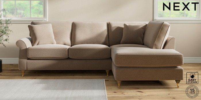 6.12.1 Buy Ashford Relaxed Sit Medium Corner Chaise - Right Hand Tweedy Blend Easy Clean Light Dove Natural Castor - Light from the Next UK online shop Click here to use our accessible website