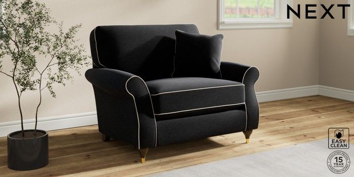 7.3.1 Buy Ashford Relaxed Sit Snuggle Fine Chenille with Contrast Black and Oyster Modern Turned Metal Cap - Mid from the Next UK online shop Click here to use our accessible website