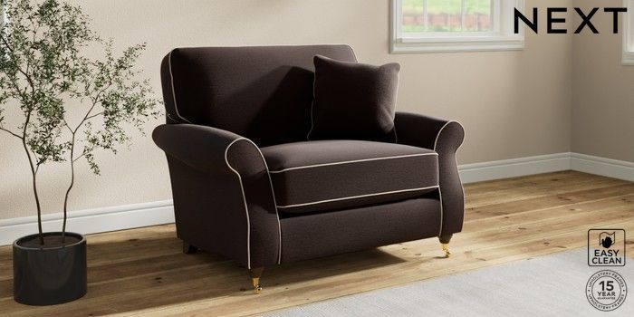 7.3.1 Buy Ashford Relaxed Sit Snuggle Fine Chenille with Contrast Chocolate Brown and Oyster Castor - Mid from the Next UK online shop Click here to use our accessible website