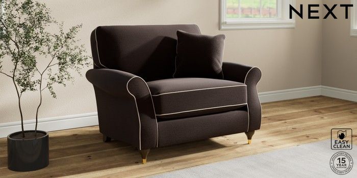 7.3.1 Buy Ashford Relaxed Sit Snuggle Fine Chenille with Contrast Chocolate Brown and Oyster Modern Turned Metal Cap - Mid from the Next UK online shop Click here to use our accessible website