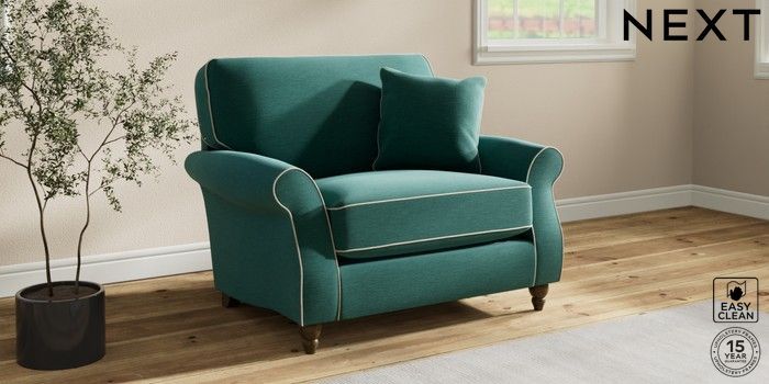 7.3.1 Buy Ashford Relaxed Sit Snuggle Fine Chenille with Contrast Dark Juniper Green and Oyster Low Turned - Mid from the Next UK online shop Click here to use our accessible website