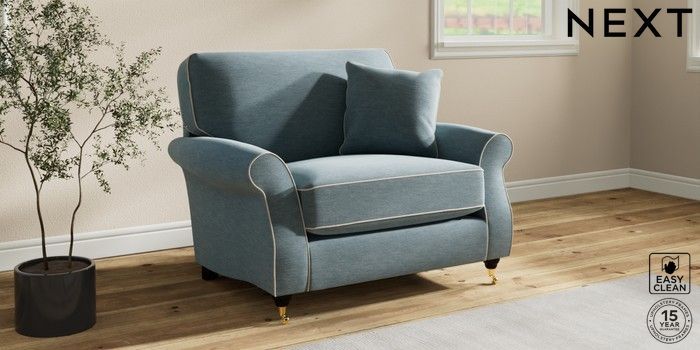 7.3.1 Buy Ashford Relaxed Sit Snuggle Fine Chenille with Contrast Mid Blue and Oyster Castor - Dark from the Next UK online shop Click here to use our accessible website