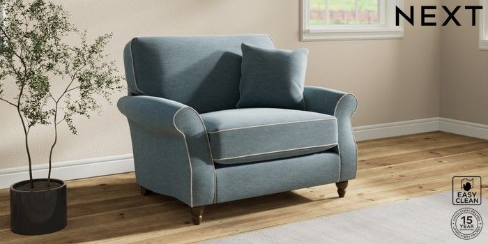 7.3.1 Buy Ashford Relaxed Sit Snuggle Fine Chenille with Contrast Mid Blue and Oyster Low Turned - Mid from the Next UK online shop Click here to use our accessible website