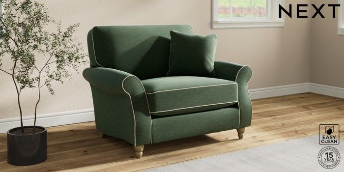 7.3.1 Buy Ashford Relaxed Sit Snuggle Fine Chenille with Contrast Mid Khaki Green and Oyster Low Turned - Light from the Next UK online shop Click here to use our accessible website
